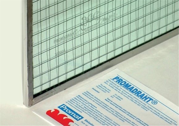 Sklo PROMADRAHT® je čiré leštěné sklo s drátěnou vložkou. Sklo PROMADRAHT® zpomaluje při požáru šíření plamenů, omezuje prostup tepla a zachovává si celistvost. Sklo PROMADRAHT® je průhledné a má dokonale hladký povrch. Drátěná vložka uvnitř skla drží kousky skla pohromadě v případě jeho rozbití.