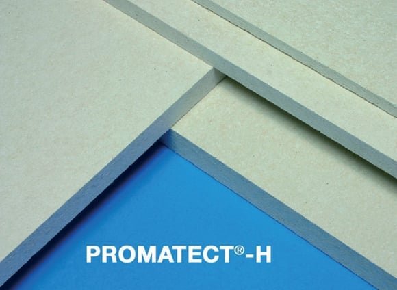 Kalcium-silikátové požárně ochranné stavební desky PROMATECT®-H, bez azbestu. Samonosné stavební desky velkého formátu pro požární ochranu staveb.