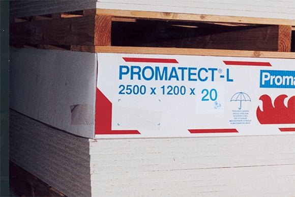 Kalcium-silikátové požárně ochranné stavební desky PROMATECT®-L, bez azbestu. Samonosné lehké stavební desky velkého formátu pro požární ochranu staveb.